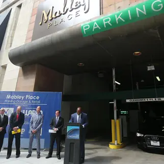 This public-private partnership project converted the vacant Tower Place Mall into a mixed-use retail and 775-space parking garage.